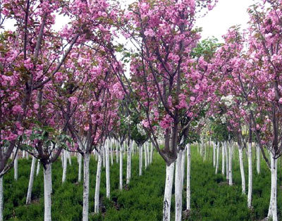 櫻花苗 側柏苗 油松苗 白皮松苗,,櫻花苗 紅葉櫻花苗 紅葉櫻花樹苗木,紅葉櫻花:是櫻花的一個變種,在國外經多年選育,其性狀已穩定,其花甚大、淡紅色、重瓣、有長梗,4月上、中旬至5月上、中旬開花,花先葉開放或花葉同放,花大而艷麗。長江以南,花期較提前10-15天;殄\上秀,葉為花增姿。櫻花——繁花似錦、婀娜多姿;紅葉——紅似云霞、耀眼絢麗,分外妖艷。紅葉櫻花,可謂觀花、觀葉之大成,是不可多得的彩葉觀花名貴樹種,應當是最具發展前景的首推新品種。特別稀有!紅葉櫻花展葉后,初春為深紅色,5至7月份葉為亮紅色,高溫多雨季節老葉漸變深紫色,葉大而厚,晚秋遇霜葉變亮紅色。