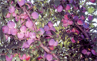 栽培習(xí)性:樹勢強(qiáng)旺,枝條分枝角度較大,樹冠趨向開張。幼樹容易分枝,萌芽率高,成枝力強(qiáng)。成齡樹以長中果枝結(jié)果為主,短果枝坐果量少,全部坐單果。碧綠紅心李早實豐產(chǎn)性強(qiáng),一般栽后二年開花,三年結(jié)果,平均株產(chǎn)2.6千克;四年豐產(chǎn),平均株產(chǎn)13.4千克,最高株產(chǎn)16.8千克,每公頃產(chǎn)2.1萬千克。在陜西正常年份,碧綠紅心李3月中旬花芽膨大,4月4日為初花期,盛花期在4月上旬,6月中旬果實開始膨大,6月底7月初果實成熟。落葉期為11月中旬。該品種自花結(jié)實率低,需要配植授粉樹,適宜授粉品種為黑琥珀、澳得羅達(dá)等。