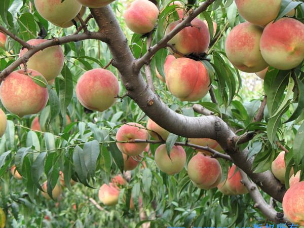 3、圓紅桃:大棚栽植4月中上旬成熟,露天6月中旬成熟,成熟后掛樹30天至7月中旬也不軟不落,貨架期極長,極耐儲運,大受客商歡迎。果實圓形有微尖,果重220克,最大330克。著色極早,全紅,內膛果也全部上滿色。桃毛少,采前自行脫去桃毛,極美。早、大、紅、甜、硬五大優點都具備的早熟桃。